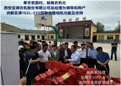 為支持西部貧困地區(qū)農(nóng)機(jī)化發(fā)展,2017年6月13日,中國農(nóng)業(yè)機(jī)械化協(xié)會聯(lián)合西安亞澳、甘肅福祥等五家國內(nèi)知名農(nóng)機(jī)裝備企業(yè)為甘肅省永登縣通遠(yuǎn)鄉(xiāng)團(tuán)莊村捐贈了價值約50萬元的農(nóng)機(jī)產(chǎn)品和現(xiàn)金。